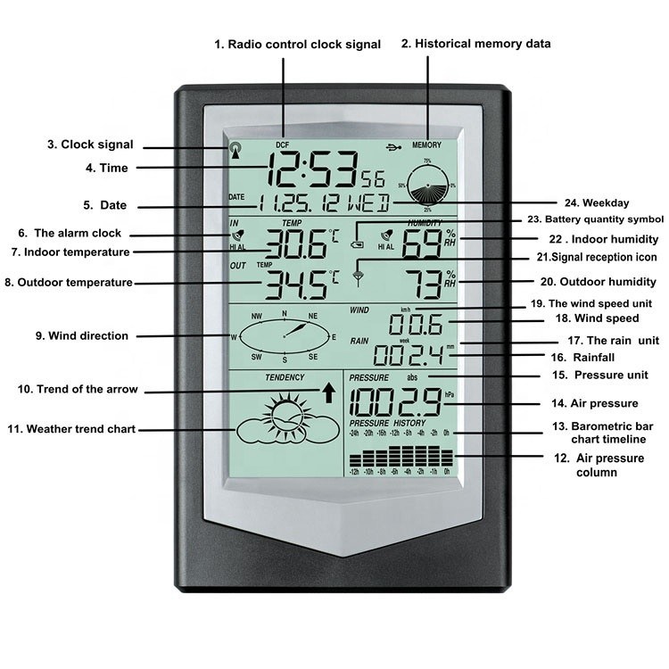 Antidisposición a la lluvia y a los rayos UV de la terraza,medida de la temperatura del aire,humedad
